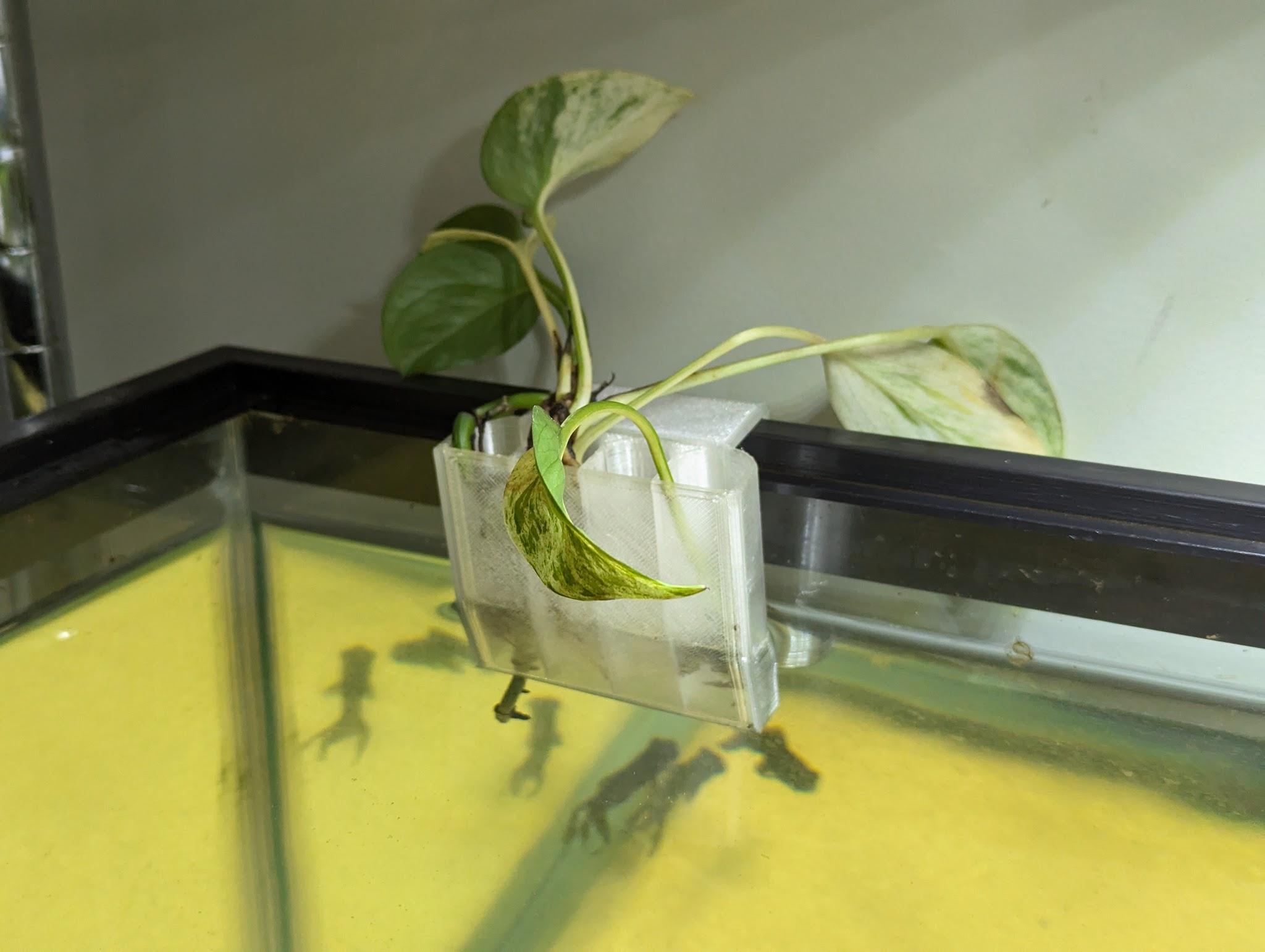 A modularly designed plant cutting holder with replaceable parts to be swapped out to fit different tank sizes and cuttings.