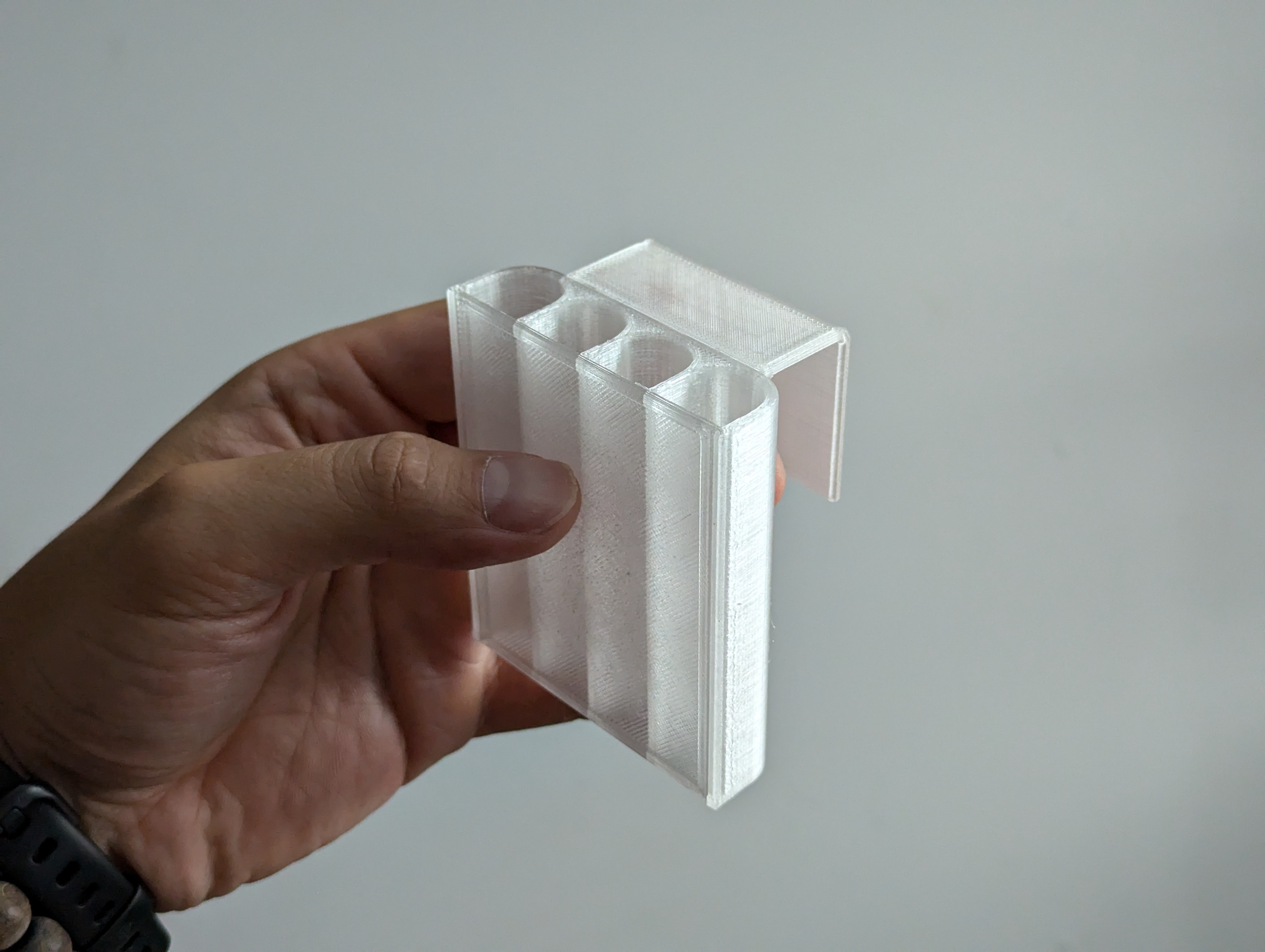 The Plant Holder was modelled in FreeCad and printed using transparent PLA. It comes in 5 pieces. The modularity allows it to be printed for efficient customization and reusability.