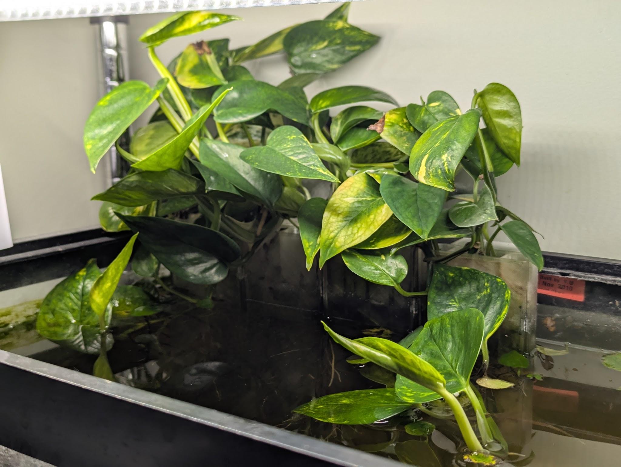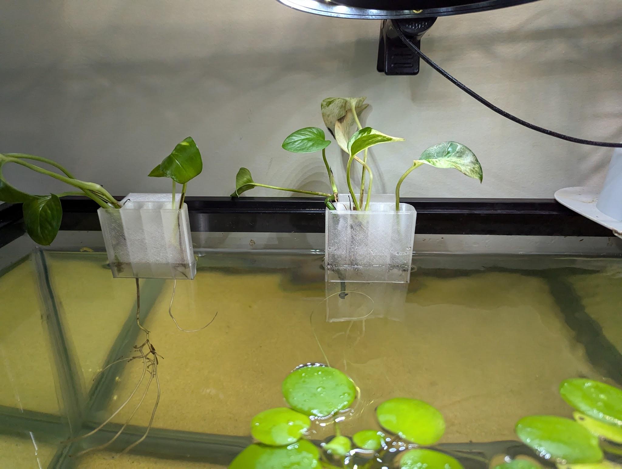 Philodendron can grow leggy very quickly and new plants can be cloned from cuttings. Cuttings will grow root systems that can help pull nutrients from waste in the water to support some natural filtration in a tank.