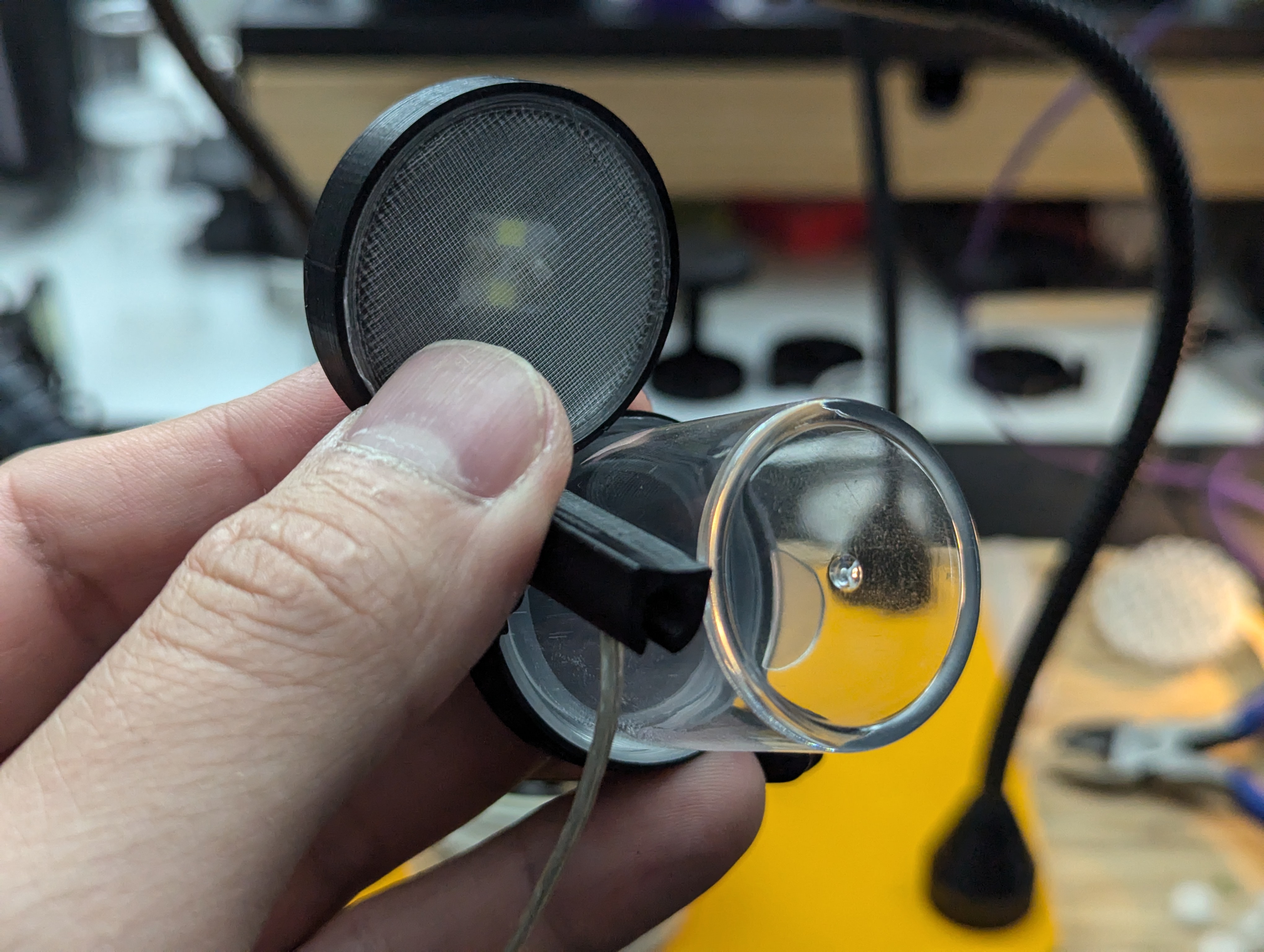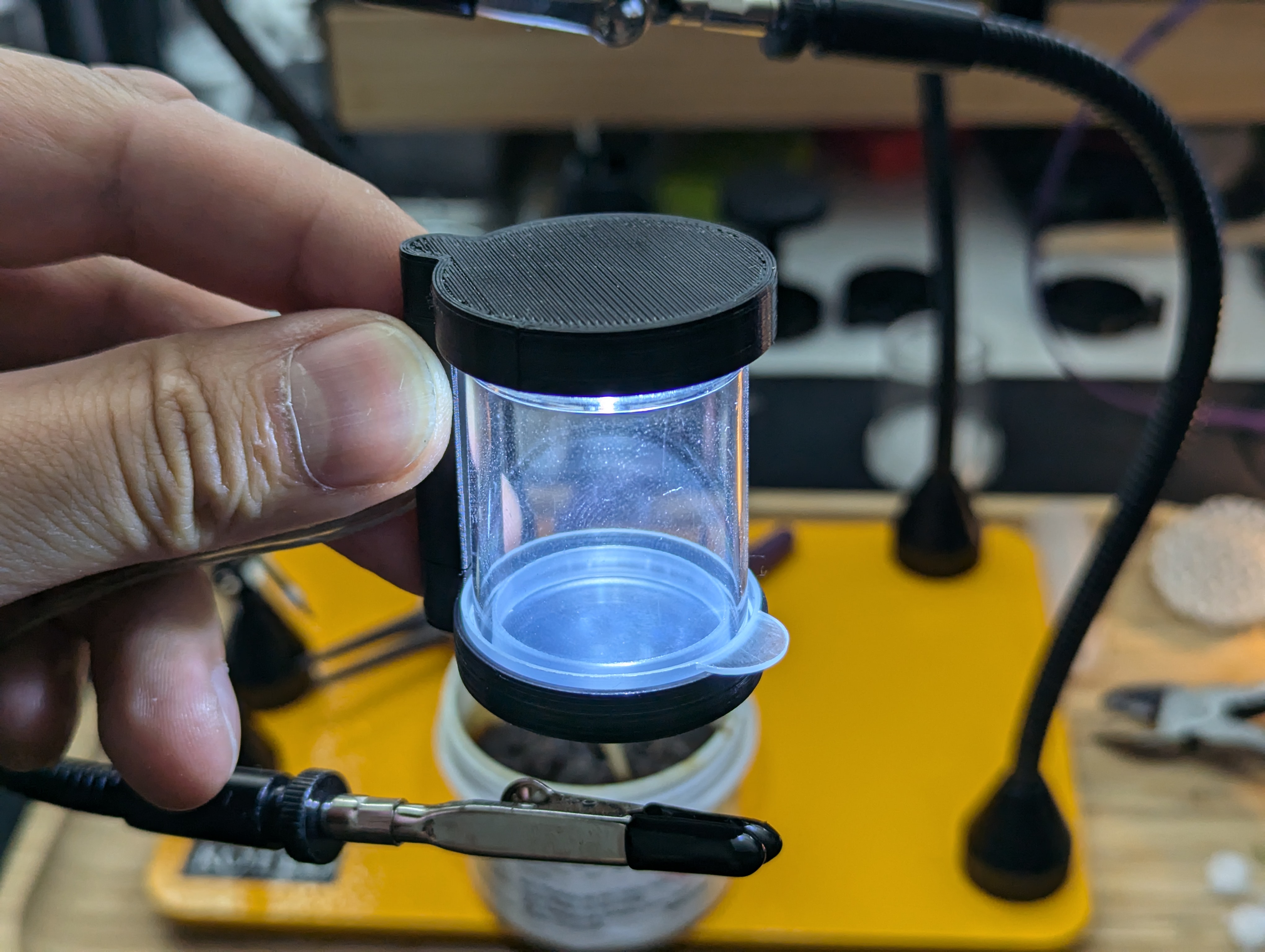 The SpeciPod is made using basic materials like mini USB LED bulbs and plastic bead jars, which are easy to find at dollar stores. The USB casing and LED are reused to form the plug so nothing is wasted. 3D-printed parts are designed to be modular, so different sizes or styles can be swapped in later.